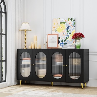 63" Striped Designed Sideboard with 4 Doors, Storage Cabinet with Adjustable Shelves 4L - ModernLuxe