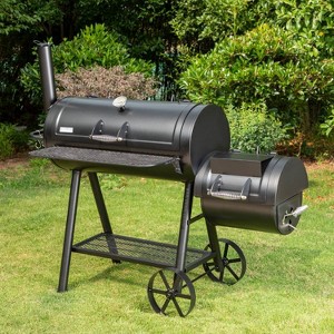 Elevate your outdoor cooking with our 16" Offset Charcoal Smoker in sleek Black. Offering a total of 941 sq.in. cooking space, it includes a 551 sq.in. smoking area, a 198 sq.in. warming rack, and a 192 sq.in. side grill for added versatility. Crafted for durability with FDA-enamel coated grates for easy cleaning, this smoker features a built-in thermometer for precise temperature control and a convenient front shelf for food prep. Perfect for creating unforgettable BBQ moments with family and friends.