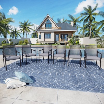 Captiva Designs Patio Dining Rattan Metal Chairs with Seat Cushions and Waist Pillows Fixed Beige 6 Pieces