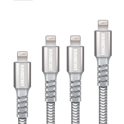 Car And Driver USB to Lightning Connector, 4 Braided Silver Cables