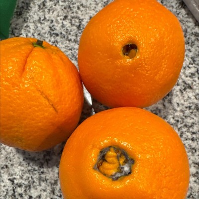 I make orange juice at home. Thought I'd try out these oranges. They were barely juicy, definately not sweet, and very waxy!!! My juicer was left with a lot of residue and I could feel it in my mouth after a small glass, bout 6 oz. even though I washed the outside before juicing. I'm going back to my organic oranges with comprable price at Whole Foods. These are just horid and I do not recommend!