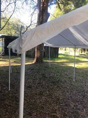 - Easy pull pin slider brackets and 6 leg height settings give you a peak height of 10 x 20-foot and a max valance clearance of 7-foot 2 inches