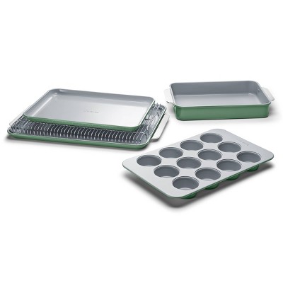 I like the baking sheets generally, but two things. The larger sheet has handles that make it huge! It doesn’t fit neatly into my storage area by my sink. I had to remove one of the shelves that covered the electrical cords running from my sink to my dishwasher. Do you really want handles on a baking sheet?Second, the paint on the smaller sheet on the outside has started to chip. Like Caraway and have a set of the pots and pans, but I have been disappointed with these two things with this order.