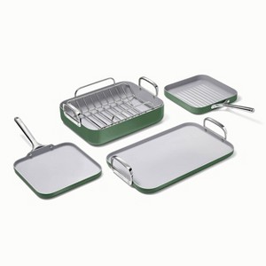 Clean cooking gets squared away with Caraway’s non-toxic Squareware Set. Featuring our signature non-stick ceramic coating, these four spacious pans are perfect for recipes that need a bit more room. Sets include complimentary magnetic organizers to keep your cabinets tidy.