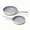 - Non-Stick Ceramic, Aluminum Core, and Stainless Steel Handles.