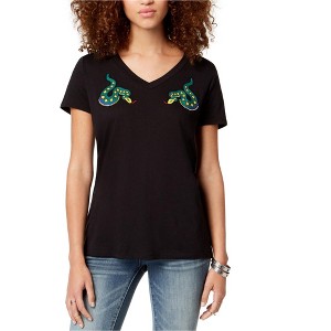 Carbon Copy Womens Embroidered Snakes Basic T-Shirt