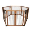 - PUPPY DOOR - Features a 10.5” wide puppy door (opens 10” tall) and can span up to 12’ when set in a near-straight line. 5 fixed panels and one 2-part panel with a latch that forms the gate door; each panel measures 30”W x 26.5”H.