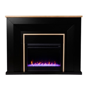 Sold as a set of multiple boxes. Add a chic design to your industrial space with this two-tone electric fireplace. Place framed photos or modern decor across the spacious mantel, while contrasting accents bring a hint of natural flair to your contemporary space. Shimmering faux crystal adds ambiance with flickering LED flames, alternating colors, and lifelike embers, all from the convenience of your sofa. Blend sleek looks with warm ambiancewhen you place this electric fireplace in your dining area or open concept living space.