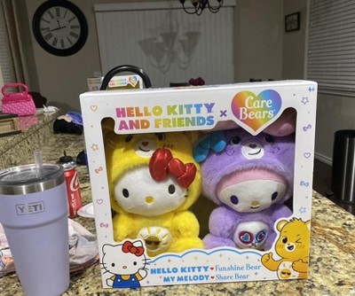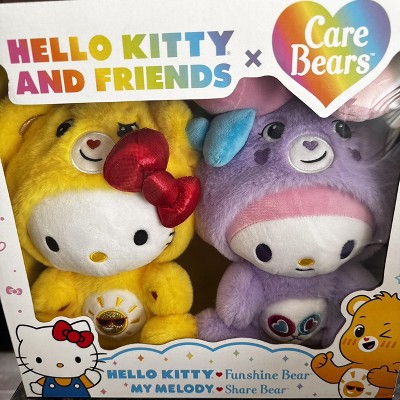 - Care Bears x Hello Kitty & Friends 2-Pack: The Care Bears x Hello Kitty & Friends 2-Pack brings your beary besties together in the ultimate sharing and caring collab. Take home Hello Kitty as Funshine Bear and My Melody as Share Bear for unlimited bear hugs!