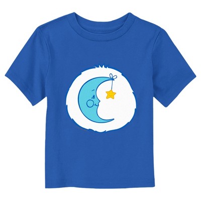 Caring is what counts, especially when it comes to caring about your favorite teddy bears with the officially licensed Care Bears Bedtime Bear Loves Naps Care Bears Toddlers' Graphic T-Shirt. From cuddly stuffed bears to tv shows and movies, the Care Bears have it all! Grab yourself a Care Bears tee today and spread a little joy in the magical realm of Care-a-Lot! Your favorite sleepy bear, Bedtime Bear, naps on a crescent moon with the text "Just a Boy Who Loves Naps" in blue print across the front.