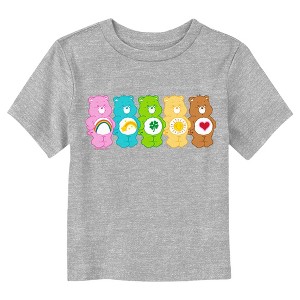Welcome to the wonderful and adorable world of Care Bears! From cuddly stuffed bears to tv shows and movies, the Care Bears have it all! Grab yourself an officially licensed Care Bears design for the whole family and spread a little joy! This Care Bears Toddlers' Colorful Bears Line Up Graphic T-Shirt features a colorful lineup of all your favorite Bears like Cheer Bear, Wish Bear, Good Luck Bear, Funshine Bear, and Tenderheart Bear.