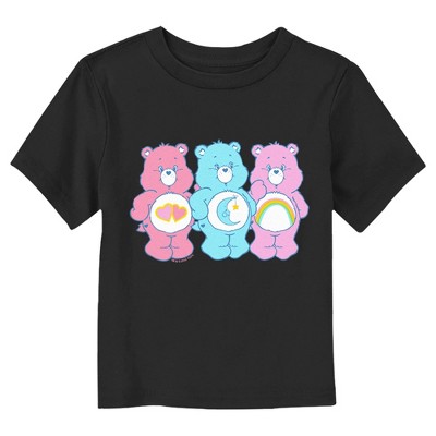 Welcome to the wonderful and adorable world of Care Bears! From cuddly stuffed bears to tv shows and movies, the Care Bears have it all! Grab yourself an officially licensed Care Bears design for the whole family and spread a little joy! This Care Bears Toddlers' Happy Bears Love Vibe Graphic T-Shirt features the pastel-colored Cheer Bear, Sweet Dreams Bear, and Love-a-Lot Bear with the Care Bears logo printed above them.