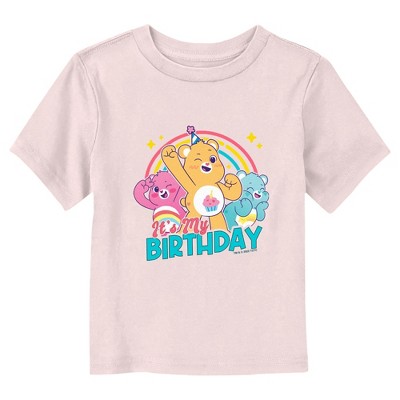 Caring is what counts, especially when it comes to caring about your favorite teddy bears with the officially licensed Care Bears Sweet Celebrations Bear Birthday Care Bears Toddlers' Graphic T-Shirt. From cuddly stuffed bears to tv shows and movies, the Care Bears have it all! Grab yourself a Care Bears tee today and spread a little joy in the magical realm of Care-a-Lot! The cute Sweet Celebrations Bear is framed by sprinkles and the text "It's My Birthday" on this fun tee!