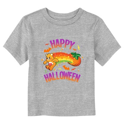Welcome to the wonderful and adorable world of Care Bears! From cuddly stuffed bears to tv shows and movies, the Care Bears have it all! Grab yourself an officially licensed Care Bears design for the whole family and spread a little joy! This Care Bears Toddlers' Tenderheart Bear Cute Halloween Graphic T-Shirt features a drawing of Tenderheart Bear playing on top of a pumpkin with the moon in the background and Halloween candy all over the place!