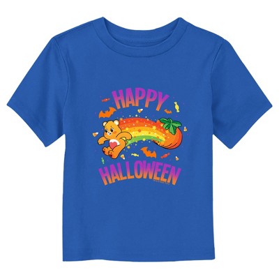 Strut your stuff with this stylish new youth t-shirt that is perfect for every occasion! Featuring the adorable Tenderheart Bear sitting atop a pumpkin while framed by a moon, candy, and bats.