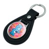 - QUALITY MATERIAL: Our durable round keychain is crafted from leather with a glossy resin-topped emblem featured design shown on one side. Approximately 1.5" (3.8cm) x 2.5" (6.4cm) in overall size, emblem is 1" (2.5cm)..