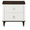 This nightstand with a USB port blends functionality with style, making it a versatile piece for any bedroom.Featuring a fresh white and brown finish, it brings a warm and modern touch to the space.The drawer, equipped with metal side glides, offers a smooth 3/4 extension for easy access, complete with dovetail construction and a safety stop for added durability.Made from a combination of poplar wood, composite wood, MDF, plywood, and walnut veneer, this nightstand is built to last, while the drawer¡¯s spacious inner dimensions of 19"L x 14"W x 7"H provide ample storage for bedside essentials.