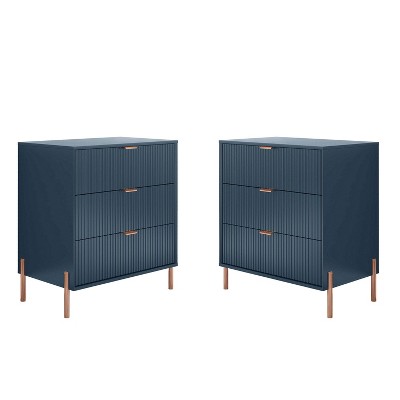 - This contemporary container themed metal nightstand features 1 shelf and finished in blue.