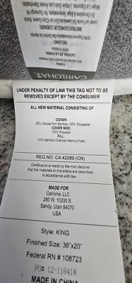 A: Cariloha is being investigated for fraudulent business practices to include mislabeled products and seliing them as King size with false tags and measurements.
