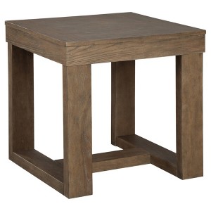This designer end table makes it hip to be square. Bold, blocky profile is enriched with plank-effect styling and a textured grayish brown finish for a look that’s cool and contemporary and a vibe that’s warm and inviting. Stylish and affordable furniture and accessories are more than a dream. For more than 70 years, Ashley Furniture has furnished millions of homes, one beautiful piece at a time. We design and build furniture, then test it for lasting quality and functionality—so you’ll love the look and the price. Signature Design by Ashley is a registered trademark of Ashley Furniture Industries, Inc.