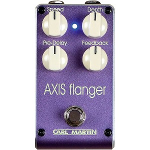 The Carl Martin Axis Flanger is a small flanger pedal loaded with features. Plus, the controls have been simplified to give all the finesse had with the Carl Martin Classic Flanger but in a reduced size. Complete with a buffered Bypass footswitch for on and off control (indicated by an LED), Speed, Depth, Pre-delay and Feedback controls, the Axis Flanger comes in a machined aluminum case finished in psychedelic purple with those Carl Martin graphics. The Axis Flanger must be powered by a regulated 9v Power Supply like the Carl Martin DC Factory.