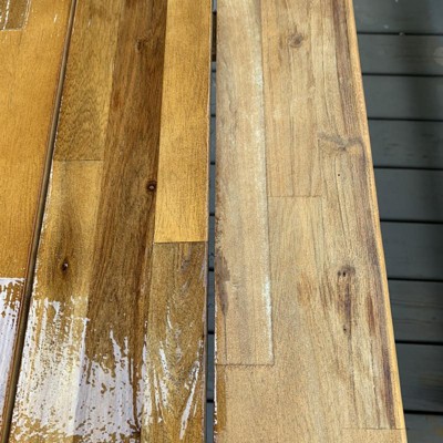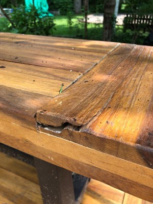 Came cracked. Got it in time for our first BBQ. started to sprinkle on us and the rain made the crack swell and slit more. Have had it less than 6 months and the sun has completely bleach the wood on top. Wanted to exchange it earlier but was out of stock. Now I’m outside my window. Save your money. Not worth it