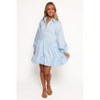 Effortlessly elevate your wardrobe with the Carlotta Long Sleeve Mini Dress in Blue. Designed with a chic spread collar and long sleeves featuring elasticized cuffs for a tailored yet comfortable fit, this mini dress brings a polished touch to your everyday style.