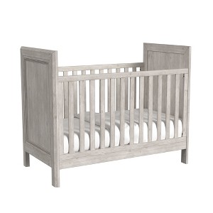 The Carlson Nursery group is a larger scale group featuring thick solid wood tops, chamfered front posts, framed drawer, and door accents in a comfortable Washed Linen or Harvest Brown finish.
