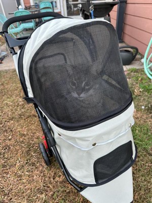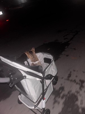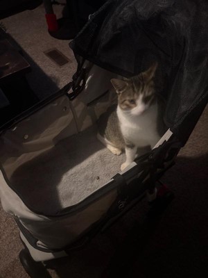 [This review was collected as part of a promotion.] We love this so much! My cat loves his new stroller. We have took it on 4 walks already. We even went to see the Christmas lights in it. It’s perfect because the bottom has a storage space for anything you need to take for you or your pet. The best part is it comes with cup holders! Is the perfect size to fit in your car and easy to carry. It rides very smooth and doesn’t make any noise when pushing it. I really have only positive things to say. This has made our time with our car so special and encouraged us to get out and take walks.