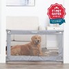 The Carlson Expandable Mesh Pet Gate with Small Pet Door in gray is a reliable solution for keeping pets safe while enhancing your home's aesthetic. Made from reinforced mesh, it expands to fit openings from 27.5” to 50” wide and stands 28” tall. Its stylish design combines functionality with appearance, and the patented small pet door allows smaller pets to pass through. This design keeps pets contained without harming your home’s integrity.