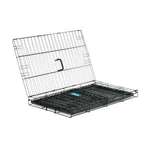 Measuring 30” long, 19” wide, and 21.5” high, the wire crate folds nearly flat, making it convenient for travel and storage. Perfect for small to medium breeds up to 24” long and up to 20” tall, the Medium Dog Crate can be used throughout all stages of your pet’s life, from puppyhood to adulthood. Whether you're training your new pup or providing a secure space for your senior dog, this crate offers a comfortable environment.