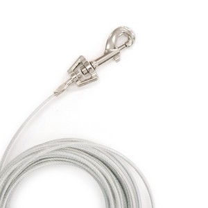 Equipped to hold up to 100 pounds, the 20-foot cable is made with durable steel wire and was designed with durability and safety in mind. The tie-out features a standard collar/harness clasp for direct contact with your pet, as well as a spring cage clasp with direct contact to the stake to guarantee your pet’s safety.