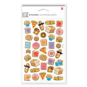 39ct 1 Sheet 3D Puffy Stickers for Kids' Smiley Bread and Food