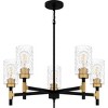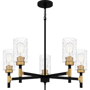 The Carly collection radiates style and sophistication. A sculptural, matte black design is paired with aged brass accents for a touch of industrial styling. Clear swirl glass shades complete the look, adding a layer of luxury and drama. Choose from a mini pendant light or a chandelier in this standout collection.