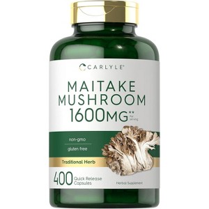 What is Maitake Mushroom?Maitake Mushrooms are traditional Japanese Mushrooms commonly known as "dancing mushrooms."These exotic fungi grow wild throughout Asia and North America on the base of Oak, Elm, and Maple trees. Maitake Mushrooms are a notorious source of Beta-Glucans, a special type of beneficial fiber that grows on very few species of herbs.Carlyle Maitake Mushroom: Carlyle Maitake Mushroom supplement is a premium form of this traditional herb. This gluten-free and non-GMO formula provides the equivalent of 1,600 mg of Maitake Mushroom per serving in a potent extract in super convenient quick-release capsules. Our herbal supplements are lab tested to match our superior standards of purity and potency, because you deserve the best support for your wellness routine.Carlyle Maitake —Rooted in Wellness: Our expertise in sourcing the purest ingredients combined with advanced technologies makes us proud to deliver premium, honest supplements at the best value. Carlyle Maitake Mushroom is a testament to our commitment to excellence, made with powerful ingredients rooted in wellness. Thanks for choosing us in your pursuit of living healthy.