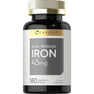 Maintaining Mineral Balance:A healthy lifestyle starts with a complete balance of vitamins and minerals that meet your nutritional needs. Iron is an essential nutrient that is not easy to get enough of from foods alone. Finding the right Iron supplement can help you receive the extra nutritional support you need to achieve a strong wellness routine now!Carlyle Slow-Release Iron:Carlyle Slow-Release Iron is scientifically crafted, providing 45 mg of elemental iron in slow, time-released tablets for optimal absorption. That's 250% of your daily value! Our vegetarian formula is gluten-free, non-GMO, and naturally free of preservatives, an honest wellness formula for anyone requiring extra support from this mineralCarlyle Slow-Release Iron Ñ Rooted in Wellness:Our expertise in sourcing the purest ingredients combined with advanced technologies makes us proud to deliver premium, honest supplements at the best value. Our Iron supplement is a testament to our commitment to excellence, made with powerful ingredients rooted in wellness. Thanks for choosing us in your pursuit of living healthy!