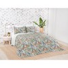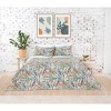 Quilted in a charming array of artistically depicted flowers, this set blooms against a rich indigo backdrop, evoking a picturesque meadow. Radiant dandelion yellow, modern melon orange, and succulent green harmonize with the complementary hues in this print to imbue a timeless allure, perfect for year-round adornment. Flip it over to reveal a soothing soft green ditsy botanical print, offering even more styling possibilities.