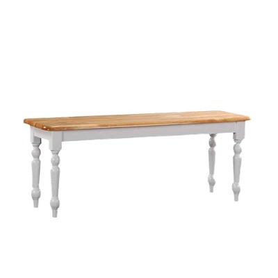 - This bench transcends the test of time with its two-tone finish, clean lines, and turned legs. You can use the versatile bench in your entryway, mudroom, or at the foot of your bed