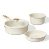 - Includes 8" & 10" skillets, 2.2QT & 3QT saucepans, 4QT sauté pan, 4.65QT Dutch oven with lid, 2 all-silicone covers (7" & 8"), 2 silicone-rimmed glass lids (8" & 10"), 2 removable handles, 6 all-silicone utensils & trivets, and 5 pan protectors.