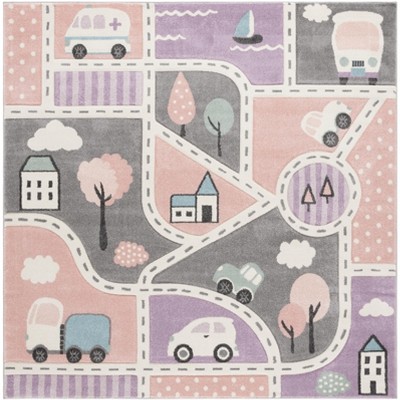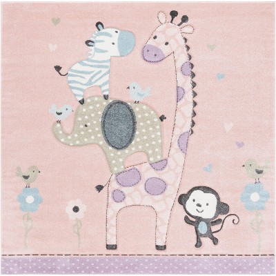 Carousel Kids CRK154 Power Loomed Indoor Area Rug - Pink/Ivory - 6'7"x6'7" - Safavieh Kids