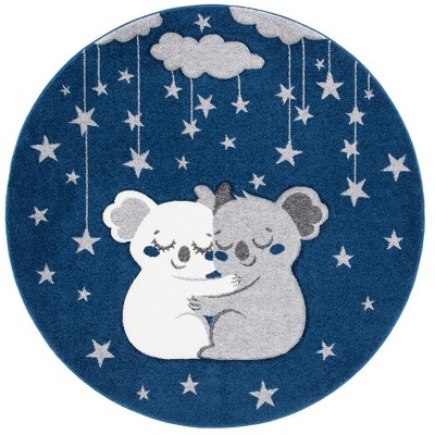Carousel Kids CRK185 Power Loomed Area Rug - Ivory/Blue - 5'3" round - Safavieh.
