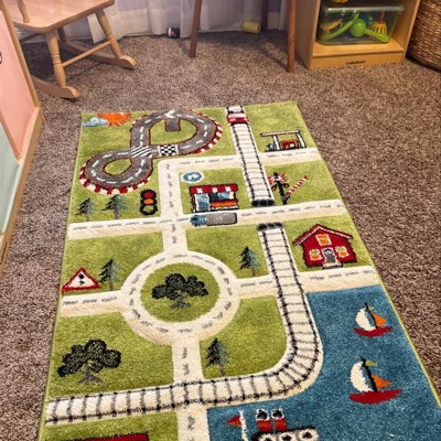 This rug is beautiful and so great for imaginative play! We got the 5ish x 7ish rug and it fills most of the floor space so our son can play with others on it. It really transformed the room and made it an area our kids are happy to spend time in! The road and train tracks are fun and the kids have been practicing being angry codgers by yelling "Get off the grass!" at each other. Basically everything you need in a rug.