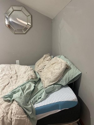 [This review was collected as part of a promotion.] After a long day at work, coming home to the bed is now my favorite part of the day. This mattress topper has given my once rock-hard bed a level of cushion and has completely enhanced the comfort of my sleeping experience. The material cradles my joints really well while not engulfing me. It does get warmer than usual, however the temperature change is not anywhere as bad as many other mattress toppers and very subtle. My only complaint is that when taking it out of the package, I noticed a sticker stuck to the foam itself and even after 20 minutes of trying to remove it cleanly, the foam still ended up a little cut up and with a yellow residue left on it. This wasn’t much of a problem as once the cover was on it, it was unnoticeable and didn’t affect the feel, but visually I just wish it wasn’t there.