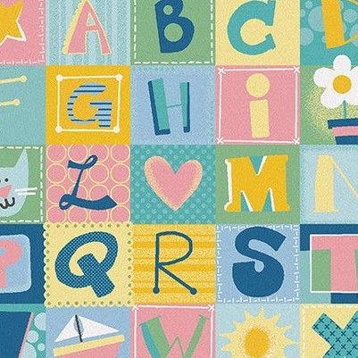Carpets for Kids KIDSoft Alphabet Blocks Learning Rug Tranquil Colors, Rectangle, Light Blue