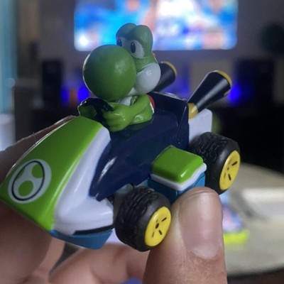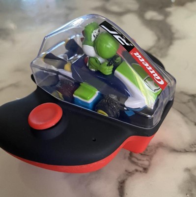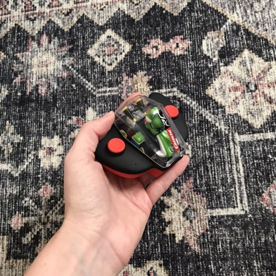 Grab the control and get ready to race with your favorite Mario Kart character in the 1:50 scale mini RC car. Yoshi races at speeds over 3-mph and comes with a remote controller that features a clear storage section to safely hold your RC car when not in use. The mini RC toy car also comes in a clear plastic jewel box making this a perfect item for a Mario toy collector to display for all to see! Race with Yoshi nonstop for up to 7-minutes on a single 20-minute battery charge with the included 3.7V rechargeable LiPo-Akku battery. The use of 2.4GHz technology allows up to 16 RC cars to be driven simultaneously giving you plenty of competition. Yoshi comes ready to run with all vehicle and controller batteries included! Rated for ages 6 years old and up, both children and adults alike will enjoy countless hours of fun and excitement with this RC car.