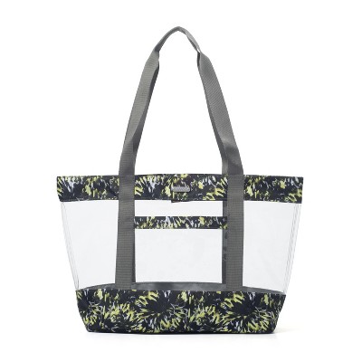Get carried away with the convenience of this coordinating tote and pouch combo. While the see-thru design of the tote makes it easy to identify your essentials when you need them, the solid-colored pouch provides more privacy for personal items. Take this stylish duo for around-town excursions, gallivanting around the globe, and everything in between. Measurements: 11.75"H x 5"W x 19"D, Pouch - 13"L x 8.5"H