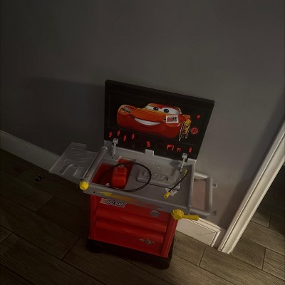 - Includes: Cars 3 Tool Service Station, Lightning McQueen Car, four Phillips screws, four wheels, one wrench, one kid-powered spinning air wrench, two jumper cables, three socket bits, one gas can, one sheet of stickers, one light-up lamp and one working car lift.