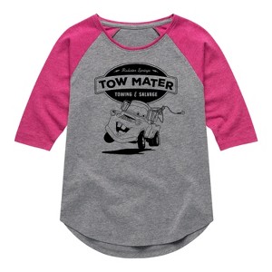 Disney's Cars - Tow Mater Towing And Salvage - Toddler And Youth Raglan Graphic T-Shirt - Hit the road in style with Cars graphic apparel, featuring bold and colorful designs of Lightning McQueen, Mater, and the entire racing crew. Each piece captures the high-speed excitement, friendship, and charm of Radiator Springs, bringing Pixar’s beloved automotive world to life. Perfect for fans of all ages who love adventure, racing, and heartwarming moments from the Cars universe, this collection adds fun and energy to any wardrobe.