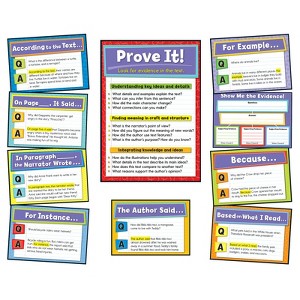 This must-have Evidence-Based Reading and Writing bulletin board set is for all teachers who want to help students improve their reading comprehension and writing skills. Focal words and phrases are emphasized in eight attractive vignettes that show students how to refer to text to answer questions and support their writing. Higher-level thinking is emphasized.