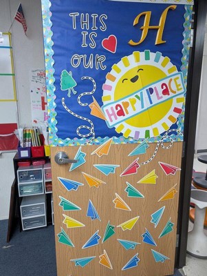 Create a happy learning environment with the Carson Dellosa Happy Place Classroom Décor Bundle, featuring everything from colorful décor to organizational classroom supplies! The 706-piece classroom décor set includes a This is Our Happy Place, welcome, and calendar bulletin board set, 65 ft. of red, 2 packs of 3' x 3" strips of sunshine, and 2 packs of 3' x 2.25" strips of paper airplane bulletin board paper. The set also includes vibrant paper airplanes, notebooks, and pens bulletin board décor ranging in size from 0.77" x 6.31"—7.25" x 3", 4" bulletin board letters, a motivational poster set (8.5" x 11" each), a sticker pack, and name plates. Each piece in the set is made of durable material—perfect for chalk board, white board, locker, and bulletin board decorations, and more. More than just colorful décor, the calendar bulletin board set allows you to display monthly schedules and reinforce holidays and important dates, while using the motivational poster set to reinforce rules for a happy and inclusive classroom. Use the sticker pack to reward students on a job well done, and the name plates for back-to-school and classroom organization.